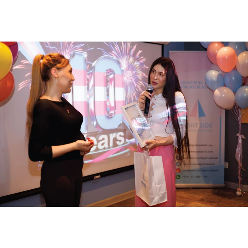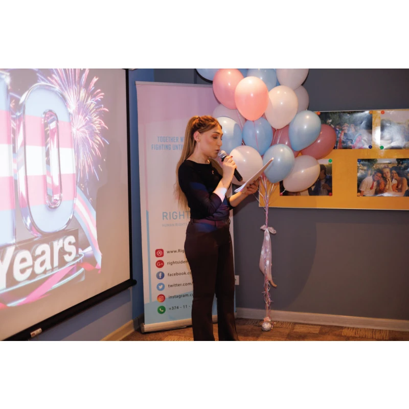 Հունվարի 27-ին «Իրավունքի կողմ» իրավապաշտպան հասարակական կազմակերպությունը նշեց իր գործունեության հոբելյանական 10-ամյակը՝ ամփոփելով տասնամյակ տևած համառ պայքարի ճանապարհը, հաղթահարած մարտահրավերները և այն իրական փոփոխություններն ու ձեռքբերումները, որոնք հնարավոր դարձան Հայաստանում տրանս ԼԳԲԻՔ համայնքի իրավունքների պաշտպանության ոլորտում։